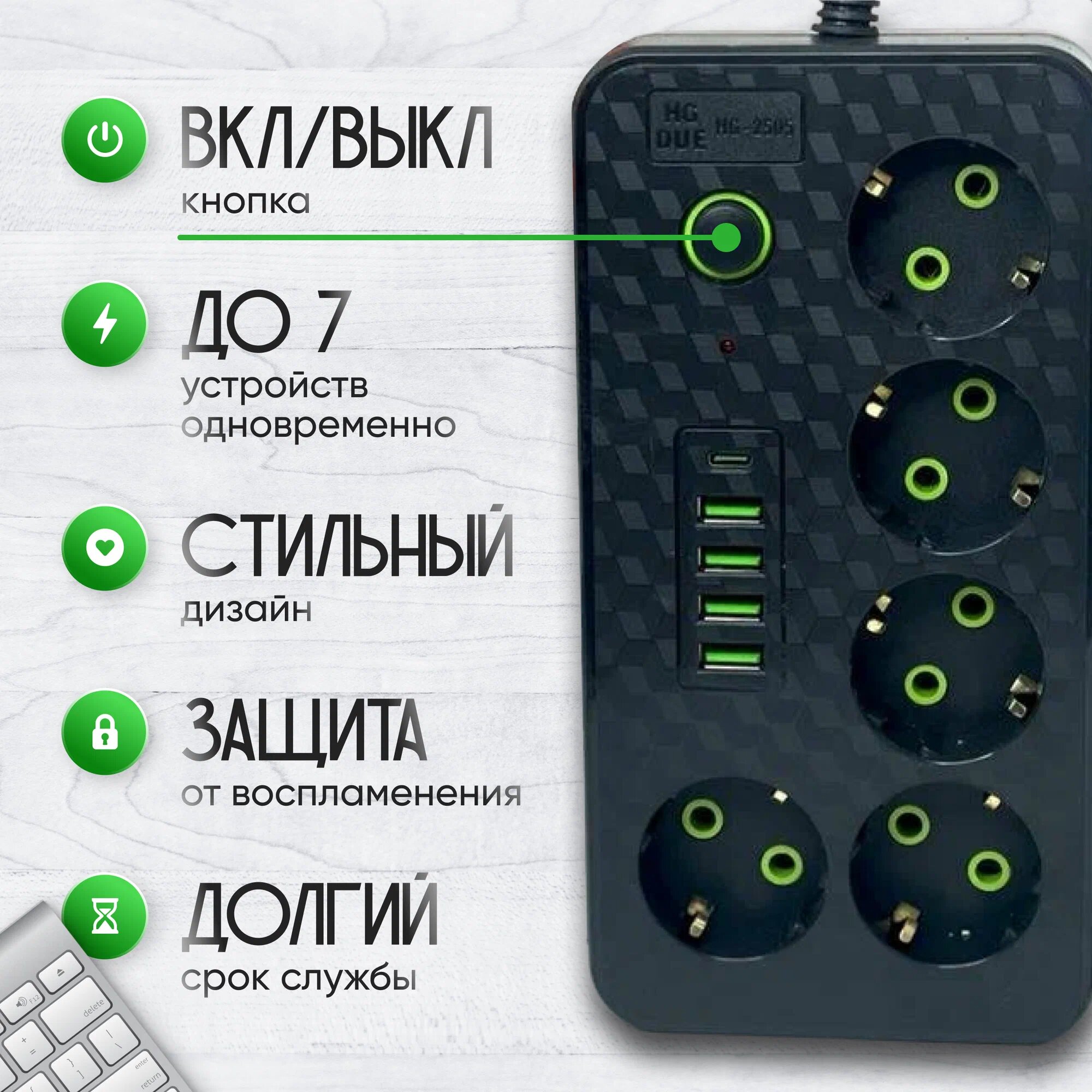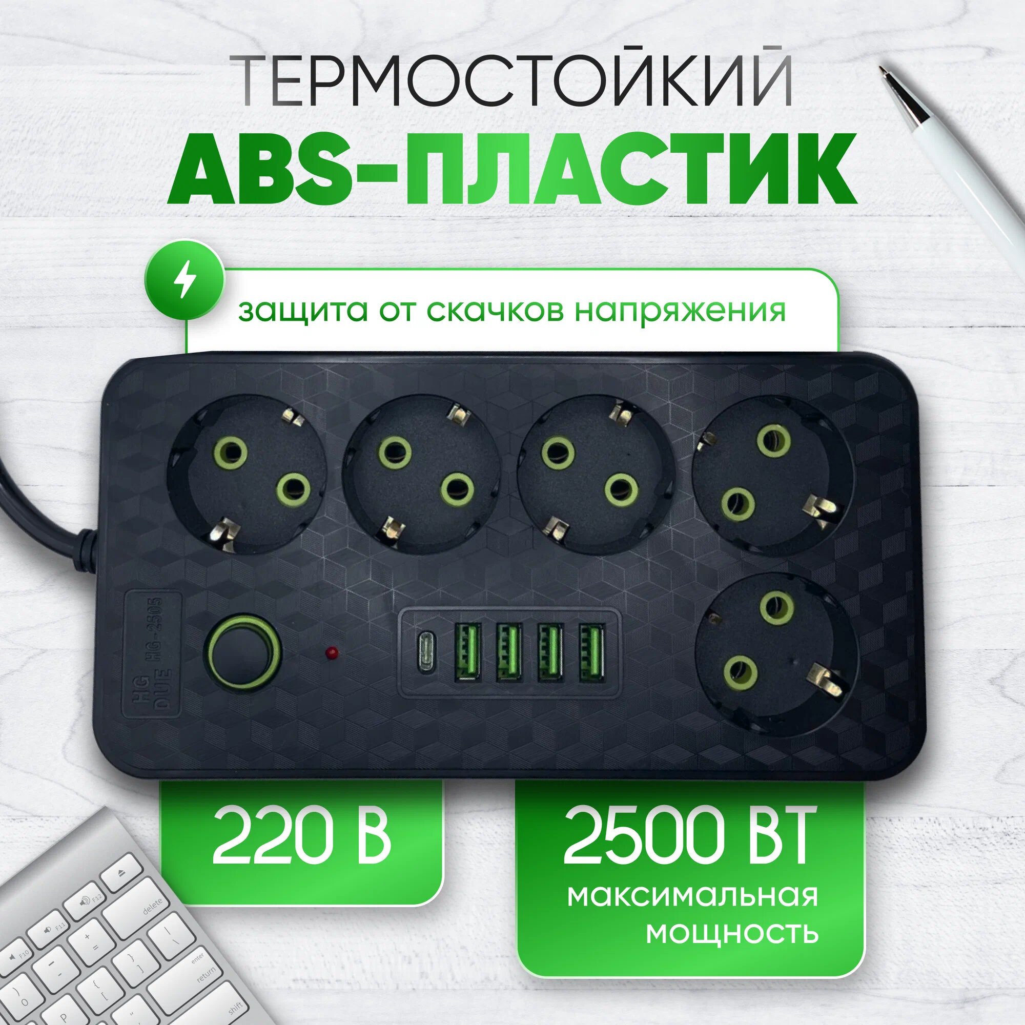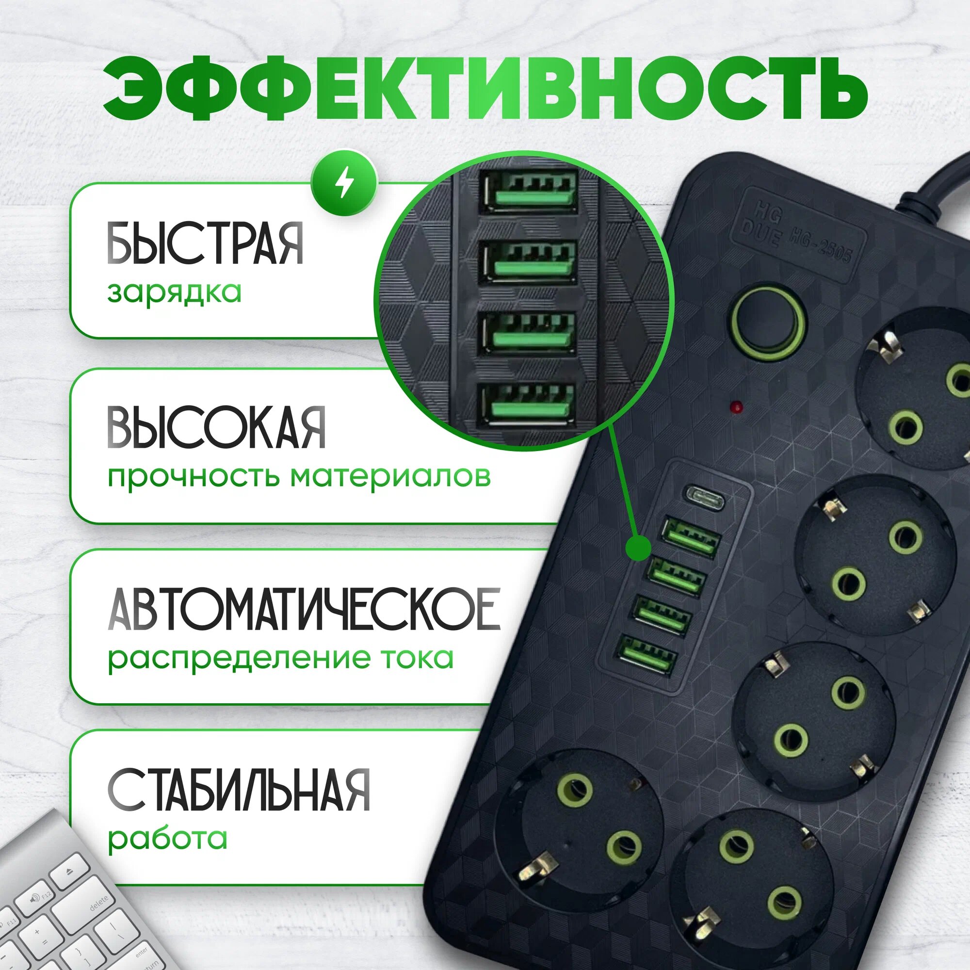 Отзывы на Сетевой фильтр с 5 гнездами и 4 USB 1 Type-C, удлинитель бытовой 3 метра
