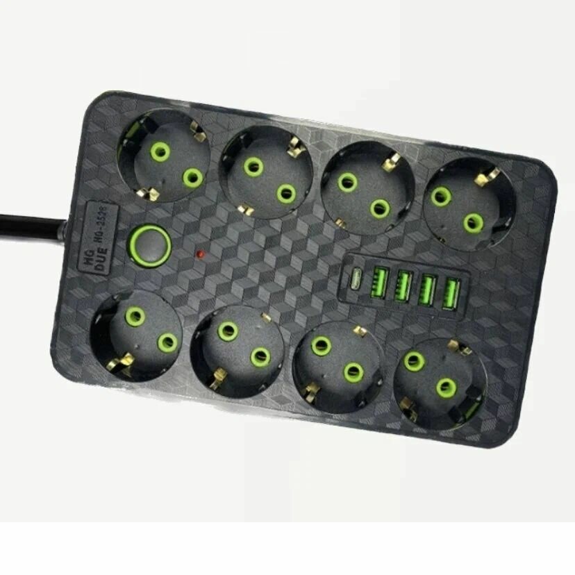 Отзывы на Сетевой фильтр с 8 розетками 4 USB + 1 Type-C Удлинитель с предохранителем, 3 метра
