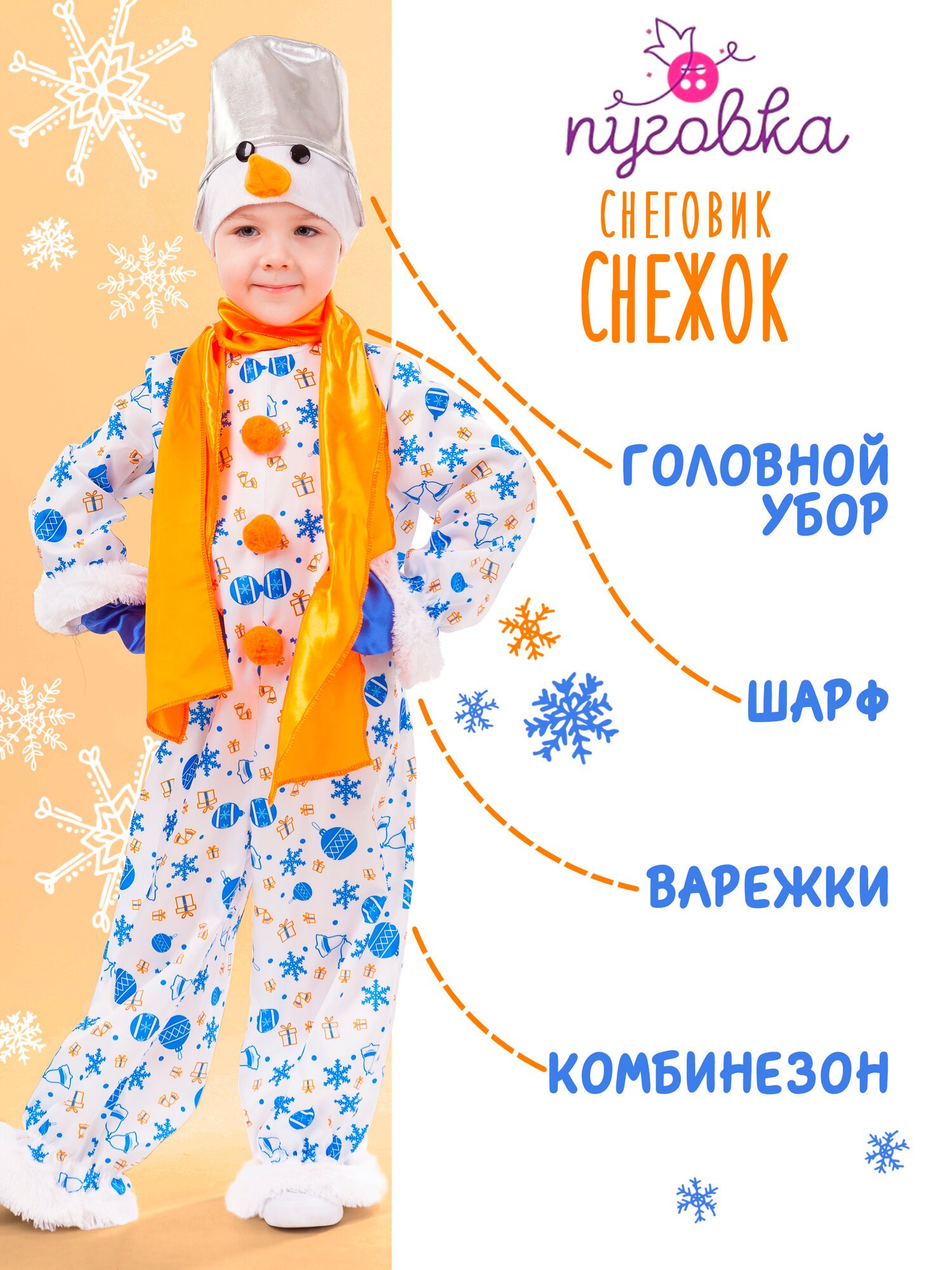 Костюм Снеговик Снежок (1037 к-18), размер 110, цвет мультиколор, бренд Пуговка 3 100 ₽