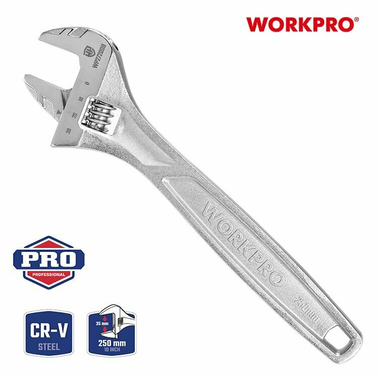 Разводной сверхмощный ключ WORKPRO 250 мм (10 дюймов) CR-V WP272008 1 400 ₽
