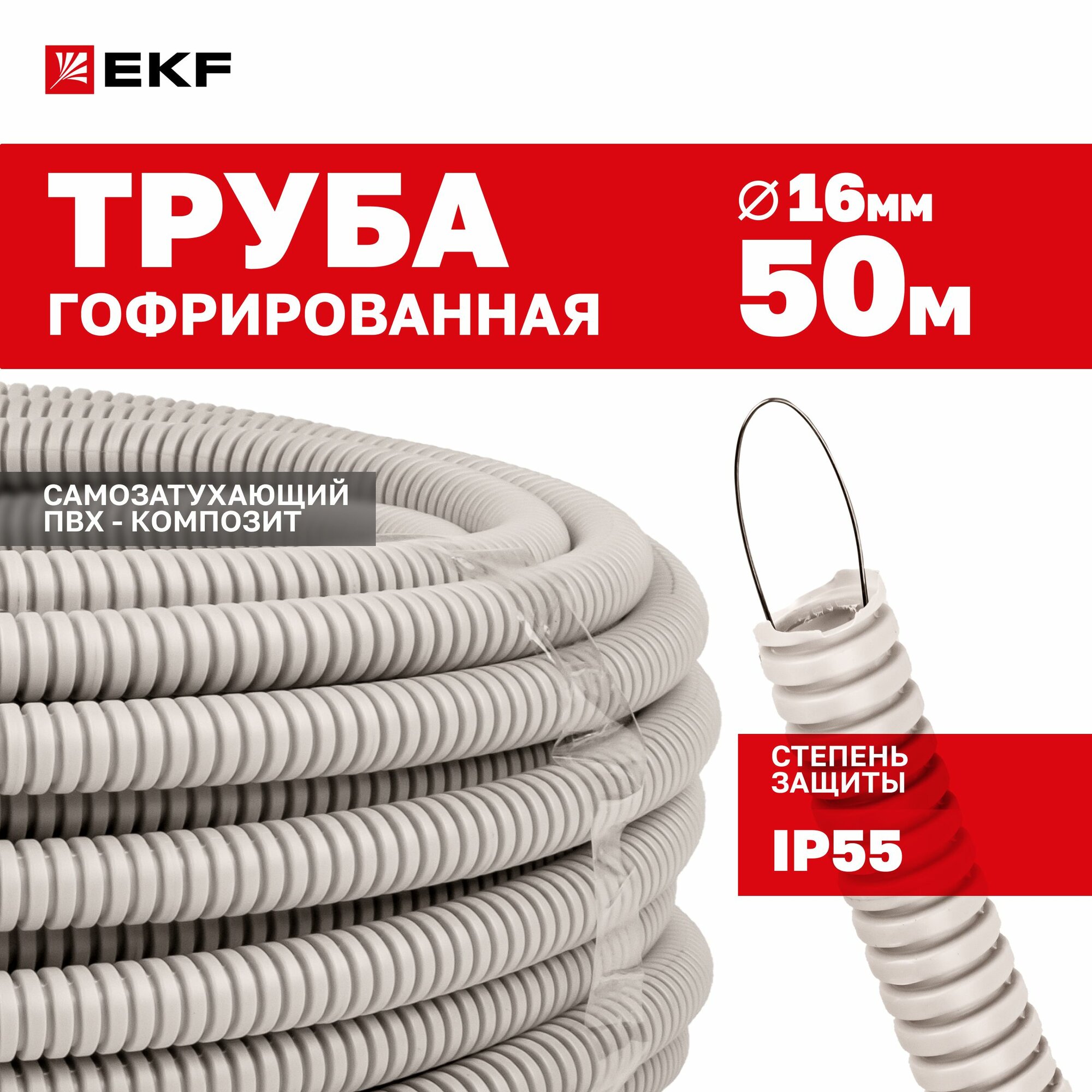 Труба гофрированная ПВХ с протяжкой d16 мм (50 метров), серая, EKF-Plast информация: