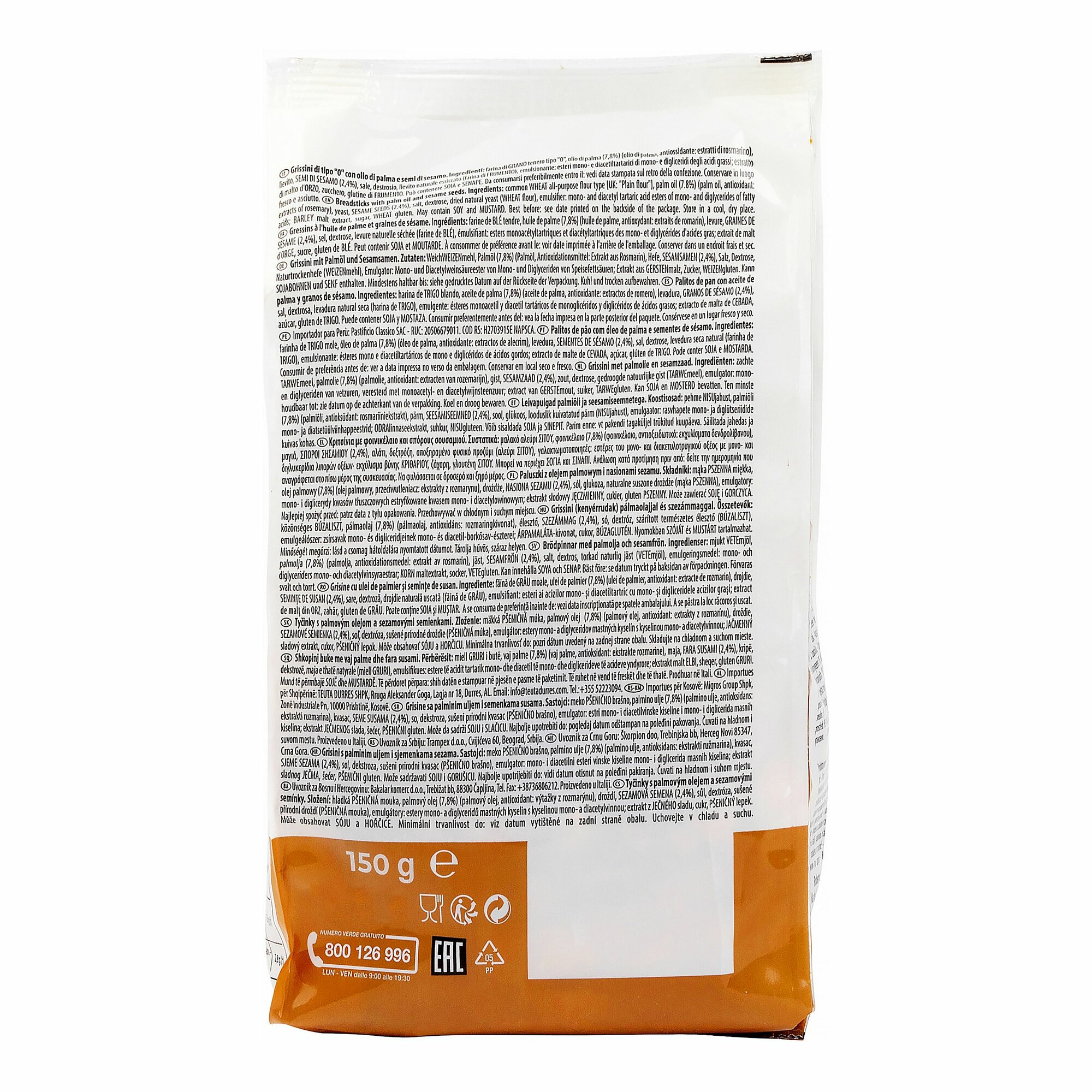 | Состав | пшеничная мука, пальмовое масло (7,8%) (пальмовое масло, антиокислитель: экстракт розмарина), оль, семена кунжута (2,4%), дрожжи хлебопекарные, декстроза, сухие натуральные дрожжи (пшеничная мука), сушеный орегано (0,9%), эмульгаторы: эфиры глицерина и диацетилвинной и жирных кислот, пшеничный глютен, экстракт ячменного солода, сахар, натуральный ароматизатор |