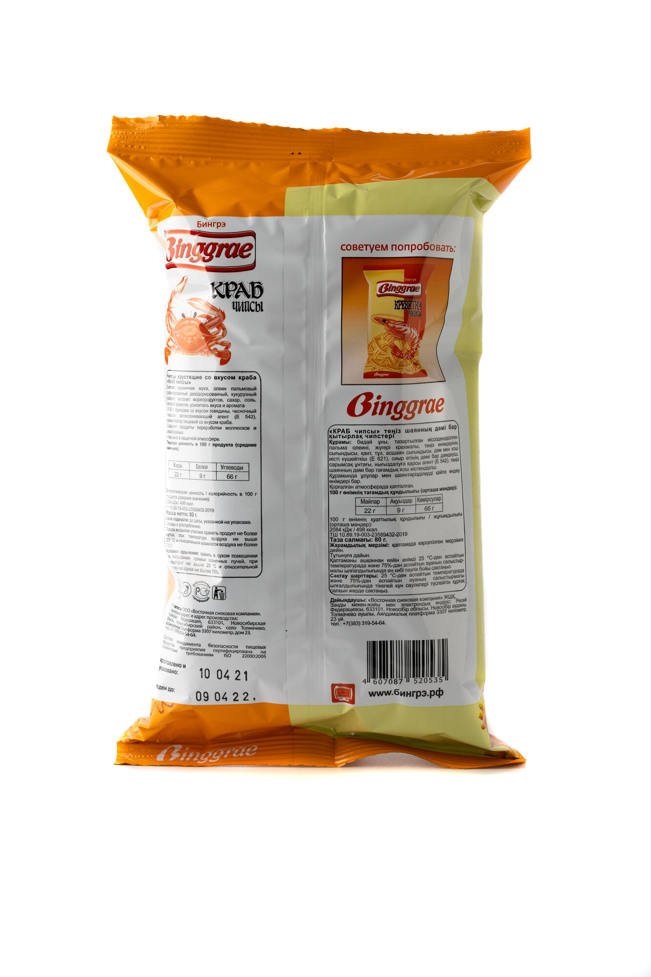 Чипсы хрустящие Бингрэ 80гр со вкусом краба "краб чипсы" информация: