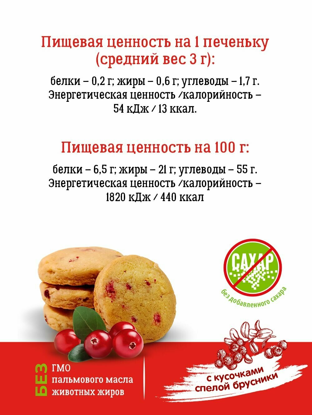 Печенье Vitok полезное натуральное без сахара с брусникой и женьшенем, 2 шт по 450 г информация: