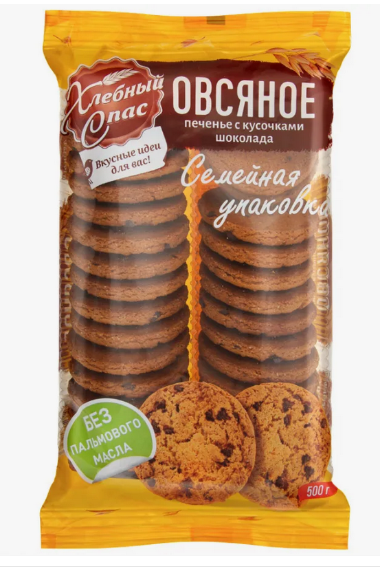 10 цен на "Хлебный спас" Печенье сдоб. Овсяное с кусочками шоколада 500 гр.