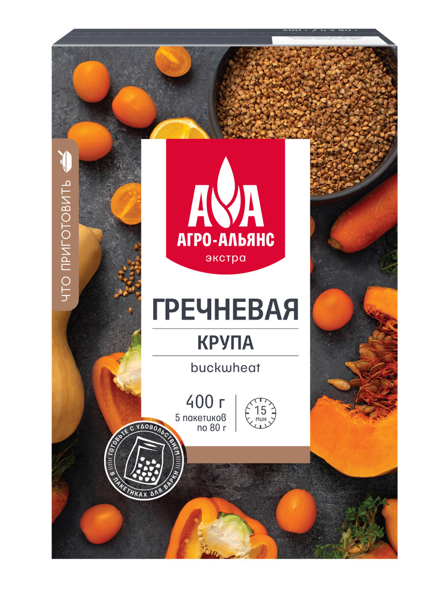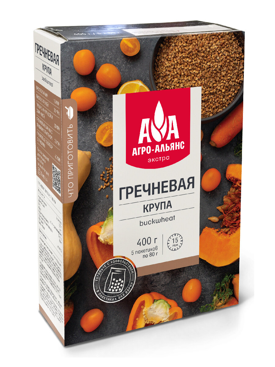 Гречневая крупа Агро-Альянс Экстра в пакетиках для варки 400г (5*80г) информация: