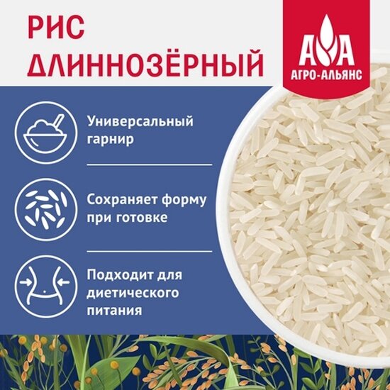 Рис Агро-альянс длиннозерный белый "HoReCa" 3 кг информация: