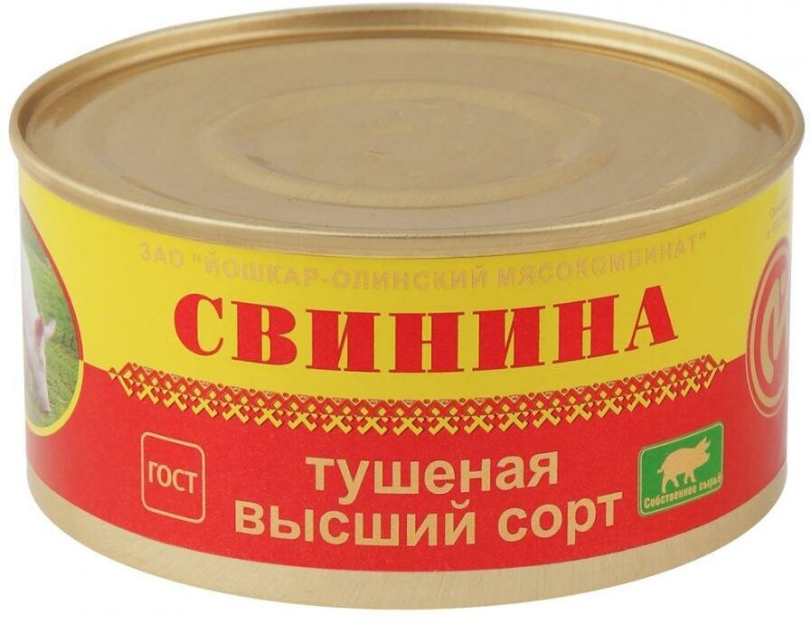 Тушенка Йошкар-Олинского мясокомбината, свинина, высший сорт, без ГМО, 325 г информация: