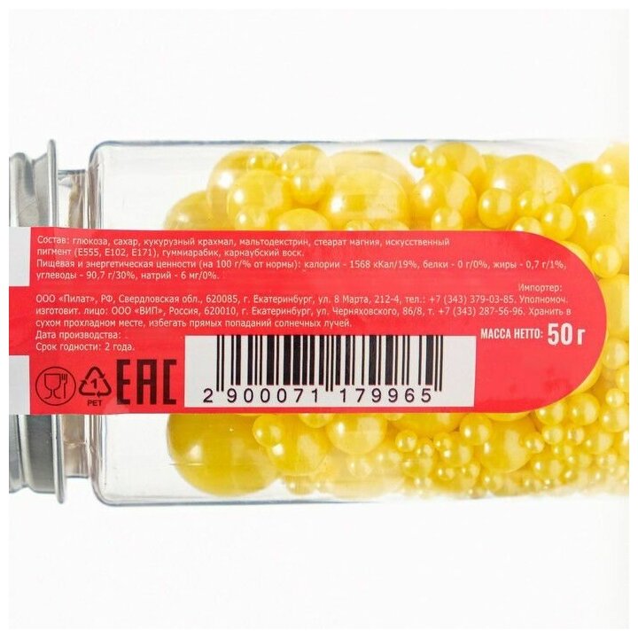 Посыпка кондитерская фирменная "Жемчужинки" 50 г желтые информация: