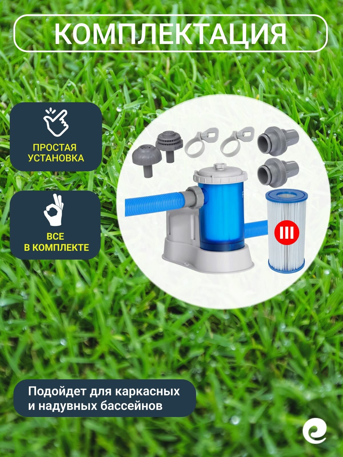 10 цен на Фильтр насос картриджный Bestway 58675 для очистки воды в каркасных и надувных бассейнов, производительность 5.678 куб. м/ч, совместим с картриджем типа III