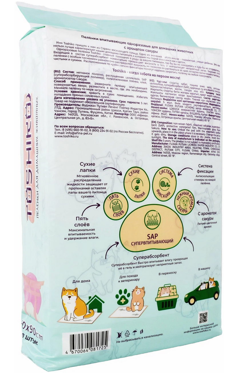 10 цен на Toshiko пеленки впитывающие с ароматом сакуры 60*90 уп.10шт