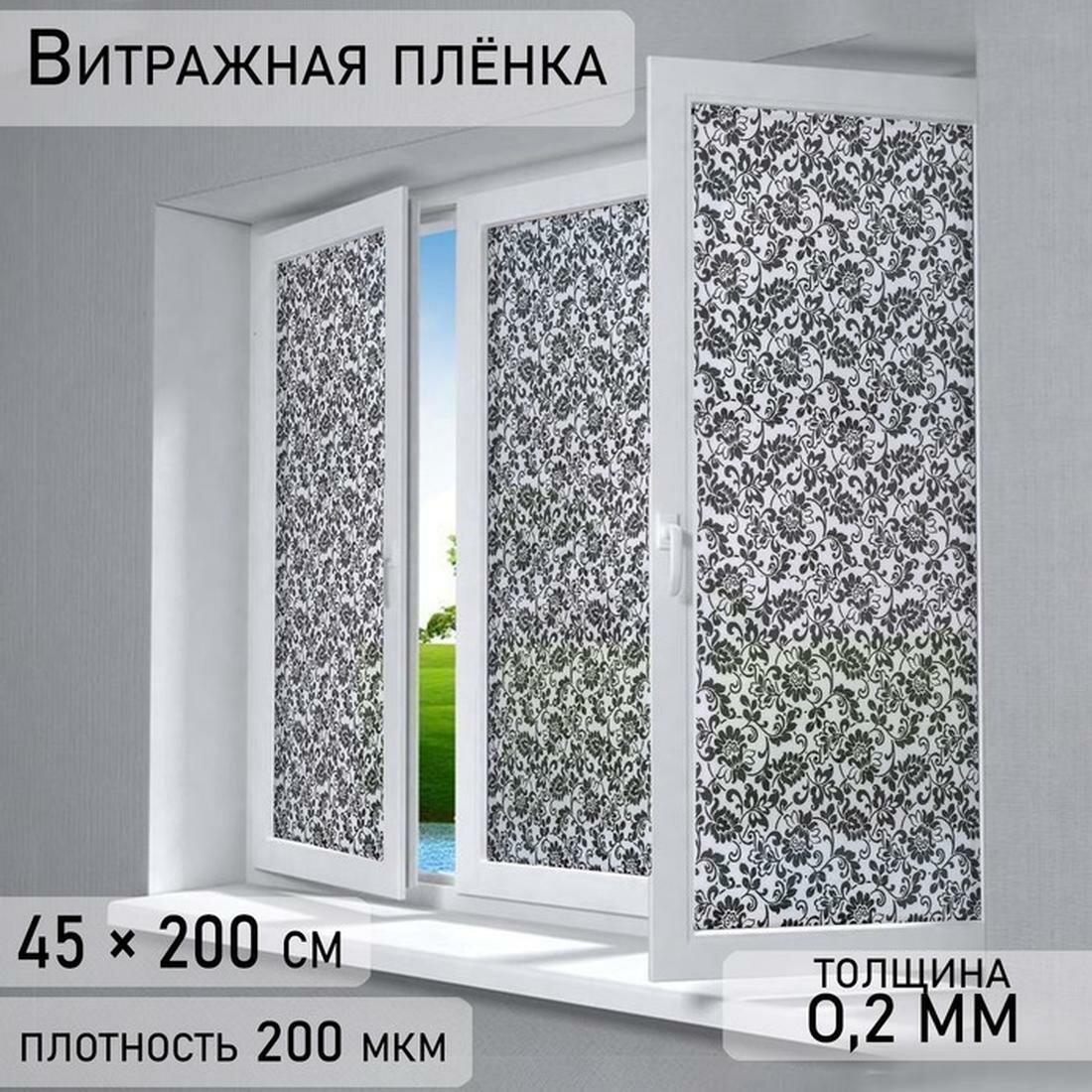 Витражная плёнка «Орнамент», 45×200 см, цвет чёрный 556 ₽