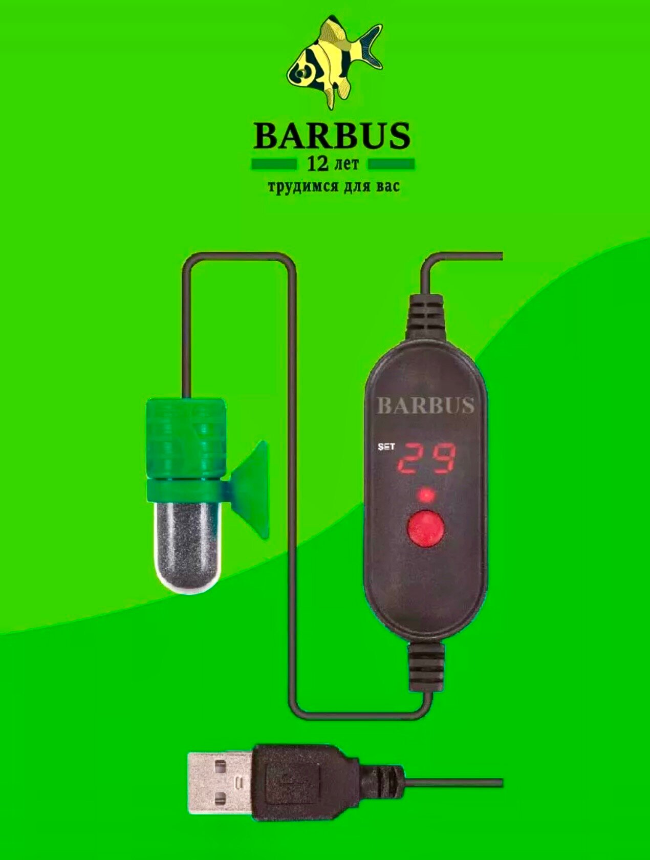 Нагреватель для аквариума 2-5 л micro pro usb обогреватель Barbus heater 016, 15W информация: