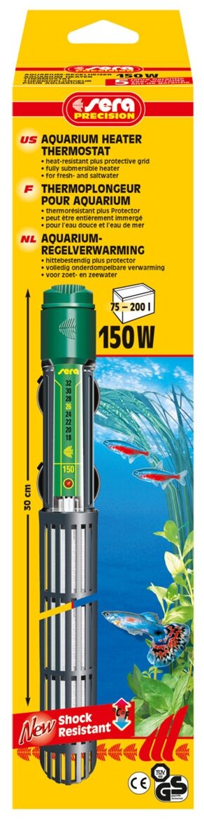 10 цен на Нагреватель Sera Precision, для аквариума, стекло, цилиндрический, 150Вт, 75л-200л