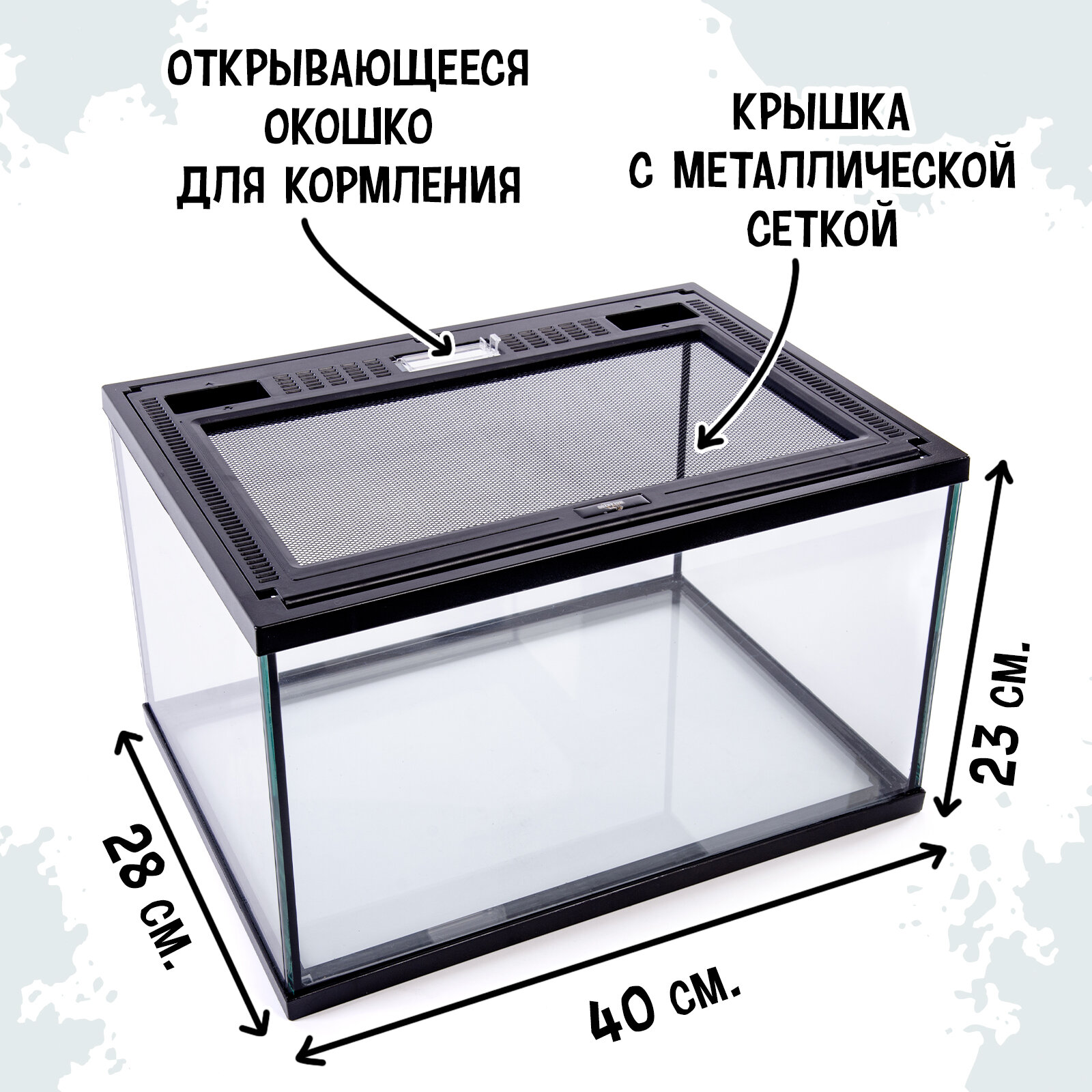 MCLANZOO Террариум стеклянный с верхней крышкой, чёрный, 40х28хН23см информация: