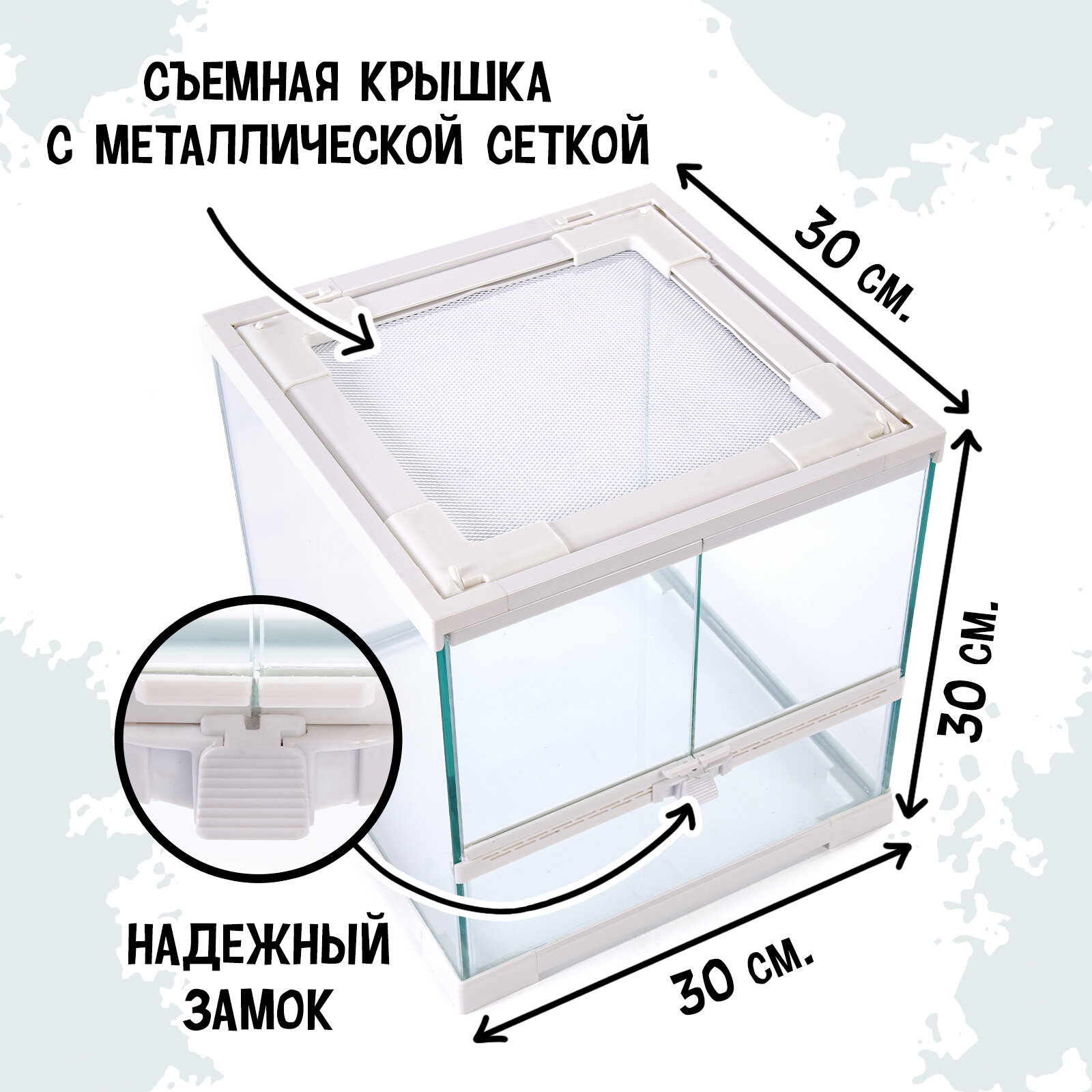 MCLANZOO Террариум стеклянный c двумя дверцами, белый, 30х30хН30см информация:
