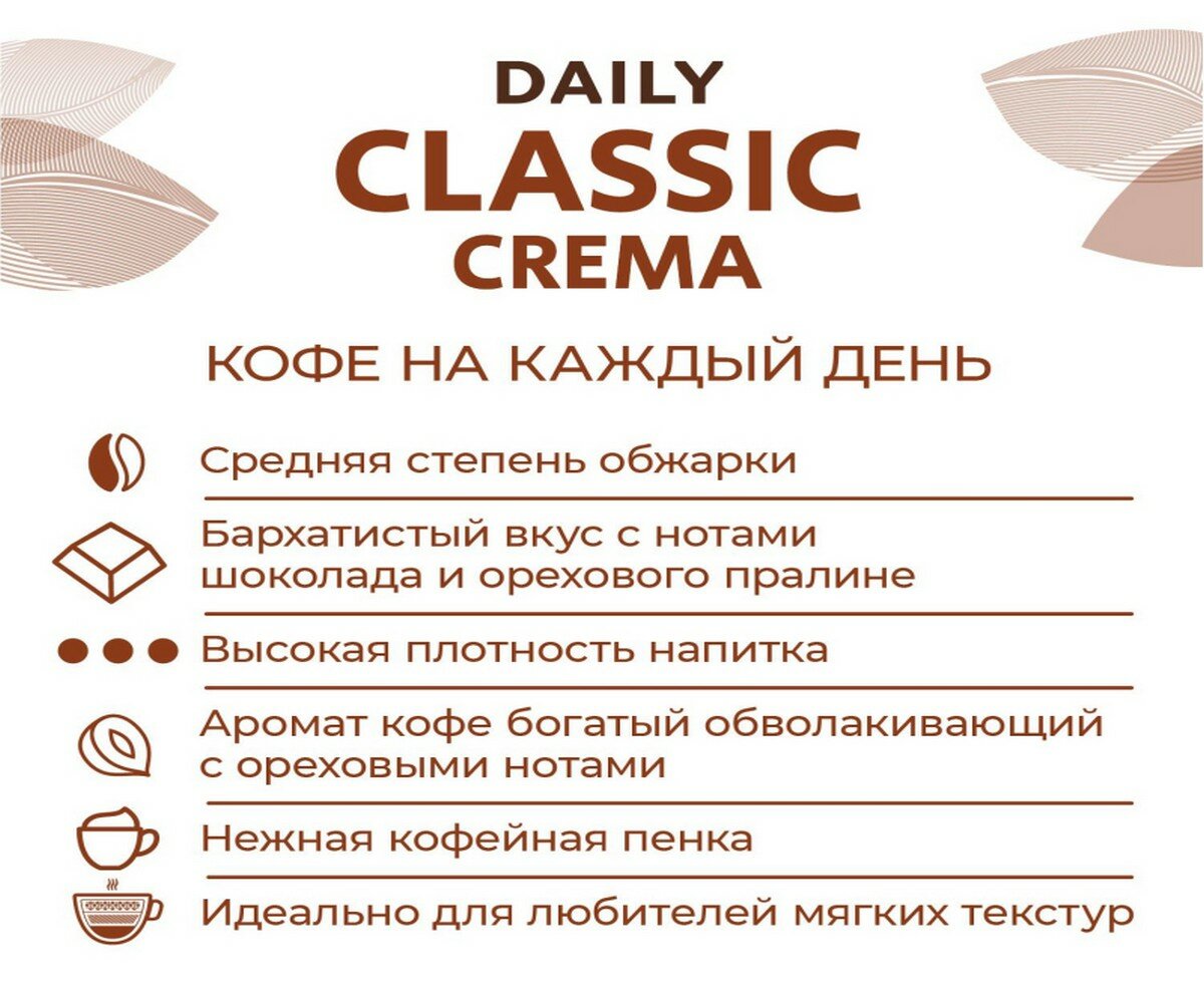 Кофе в зернах Poetti "Daily Classic Crema", вакуумный пакет, 1кг информация:
