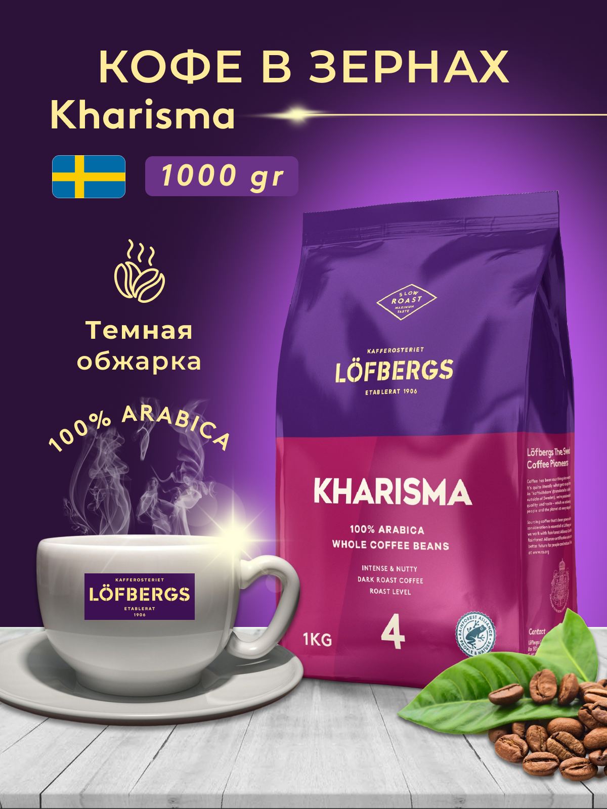 Кофе Lofbergs "Kharisma", в зернах, арабика, тёмная обжарка, мягкий пакет, 1кг информация: