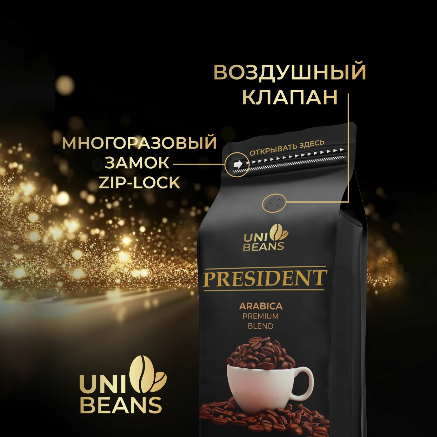 10 цен на Кофе в зернах UNIBEANS PRESIDENT, 1 кг, Арабика и Робуста, свежая обжарка