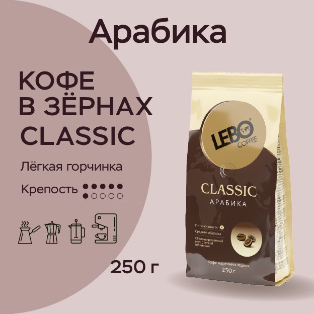 10 цен на Кофе в зернах "Lebo" CLASSIC, Арабика 100%, средняя обжарка, 250 г,