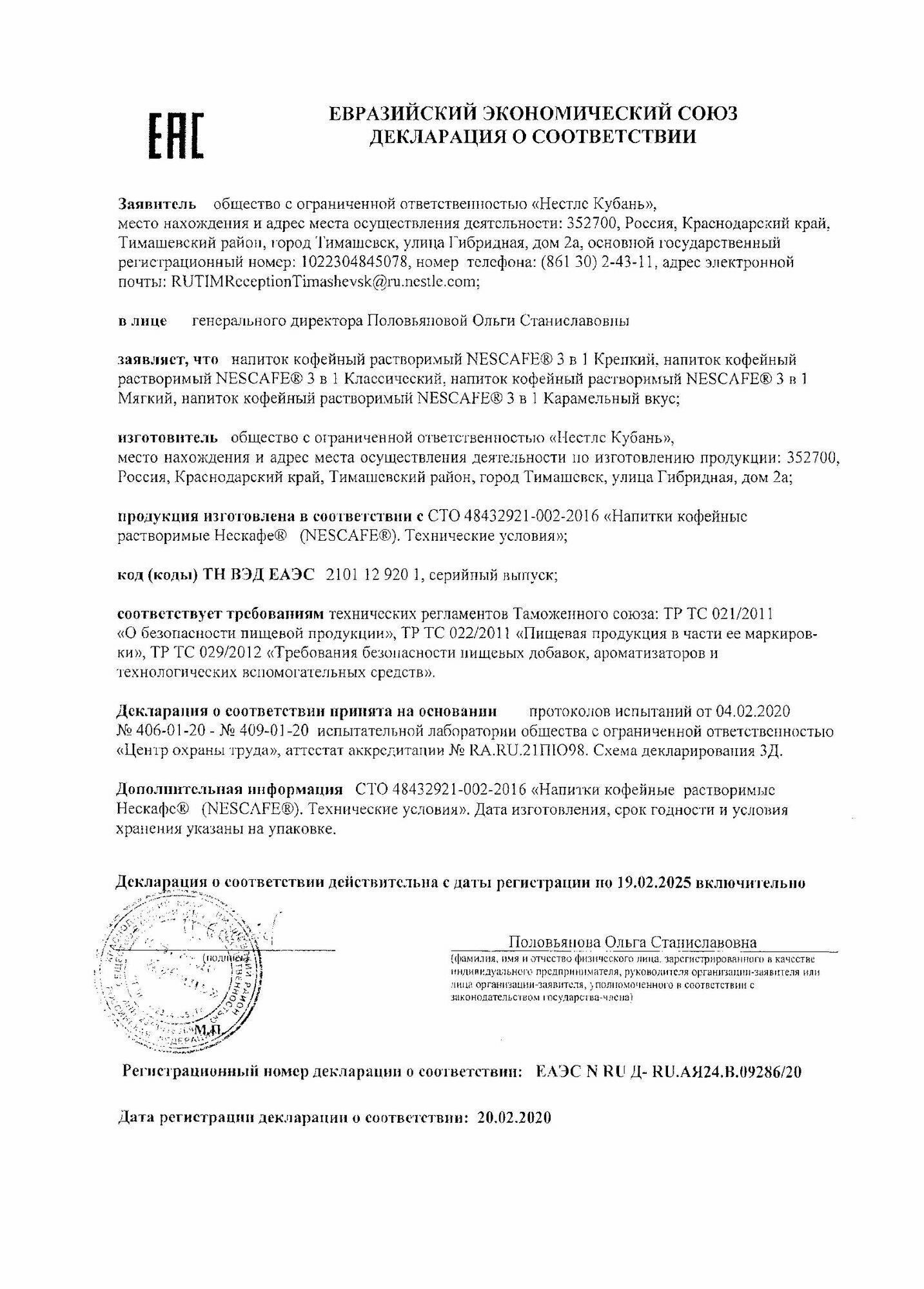 | Стандарты производства | СТО 48432921-002 |