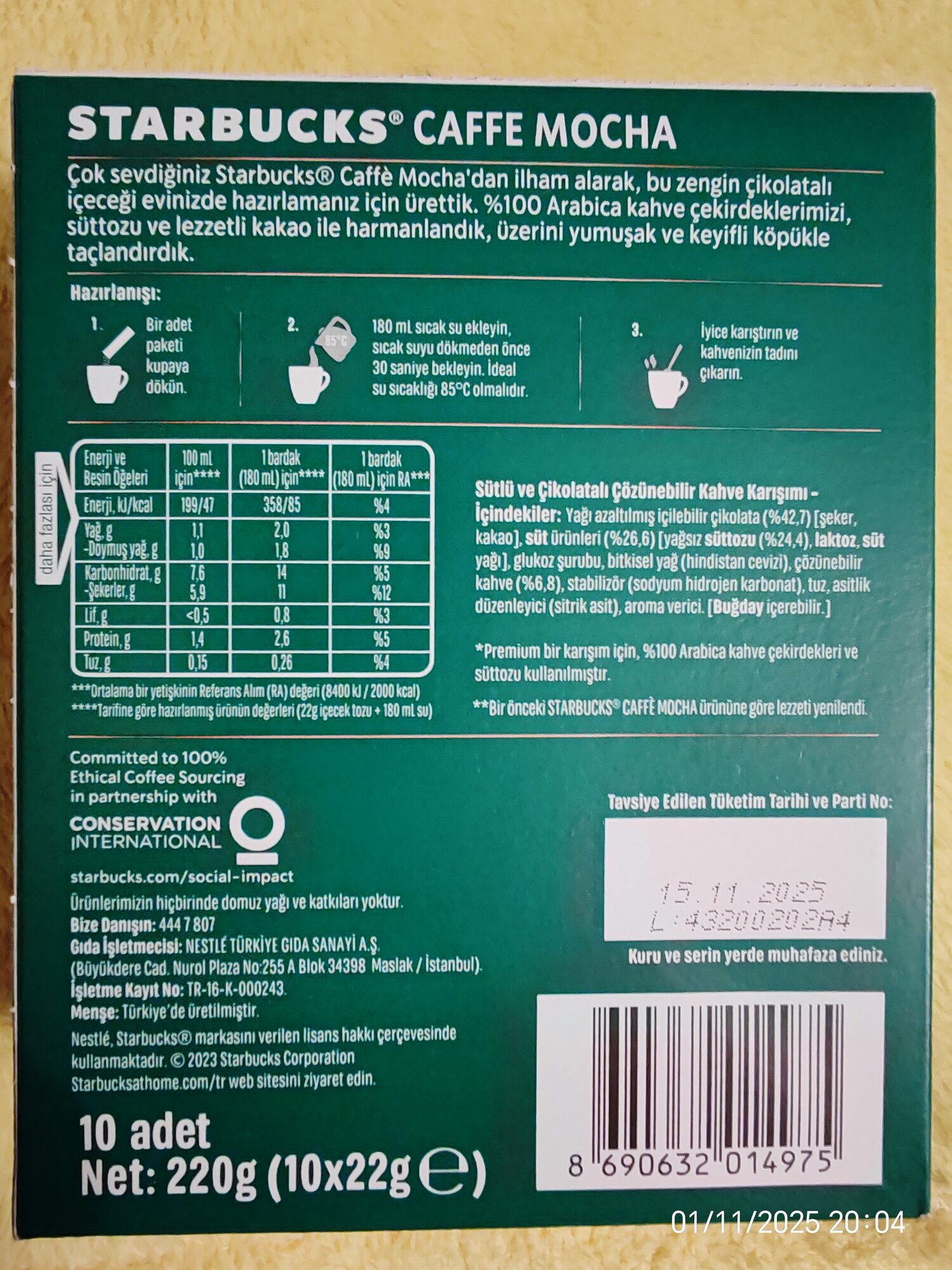 Starbucks Caffe Mocha 10шт по 22г информация: