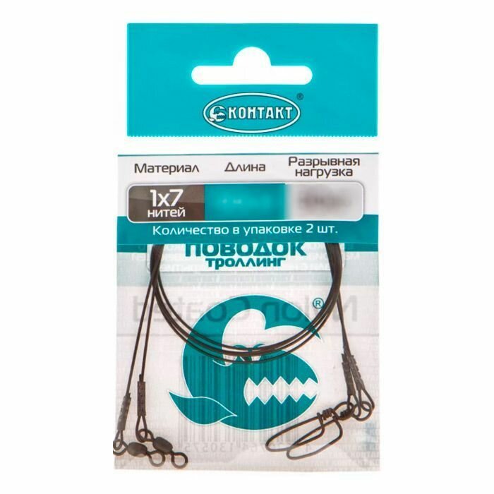 Поводок Контакт Троллинг 2шт в упаковке, нитей 1х7 длина 50см разрывная нагрузка 15 кг 480 ₽