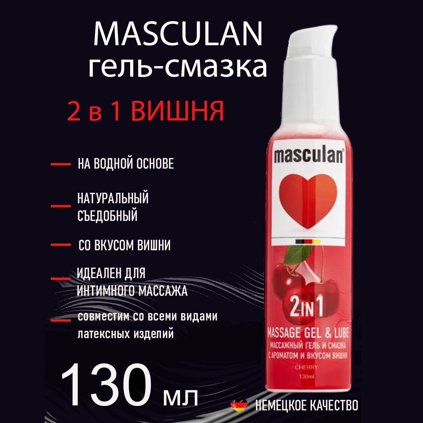 Гель-смазка Masculan с ароматом и вкусом вишни, с дозатором, пищевые компоненты, без красителей, массажный, 2 в 1, 130 мл