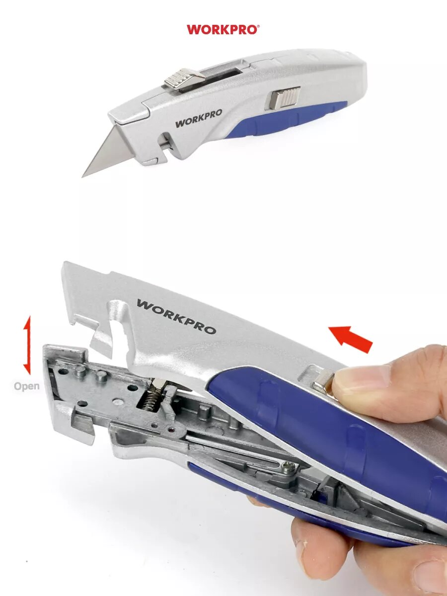 10 цен на Нож выдвижной строительный WORKPRO WP213024, алюминиевый корпус