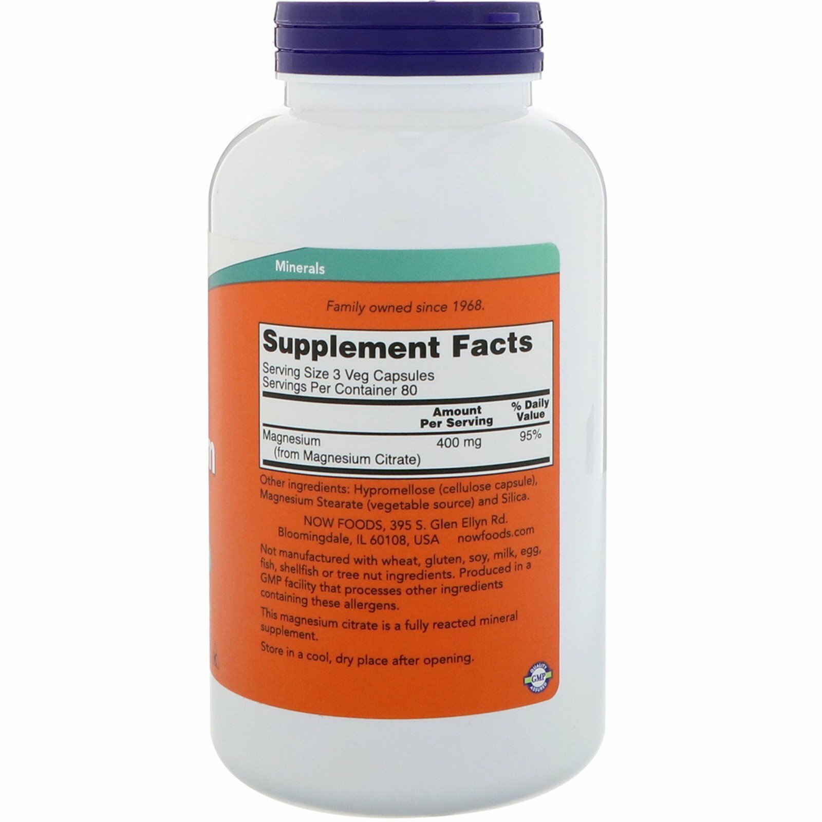 Капсулы NOW Magnesium Citrate 400 мг, 240 веганских капсул