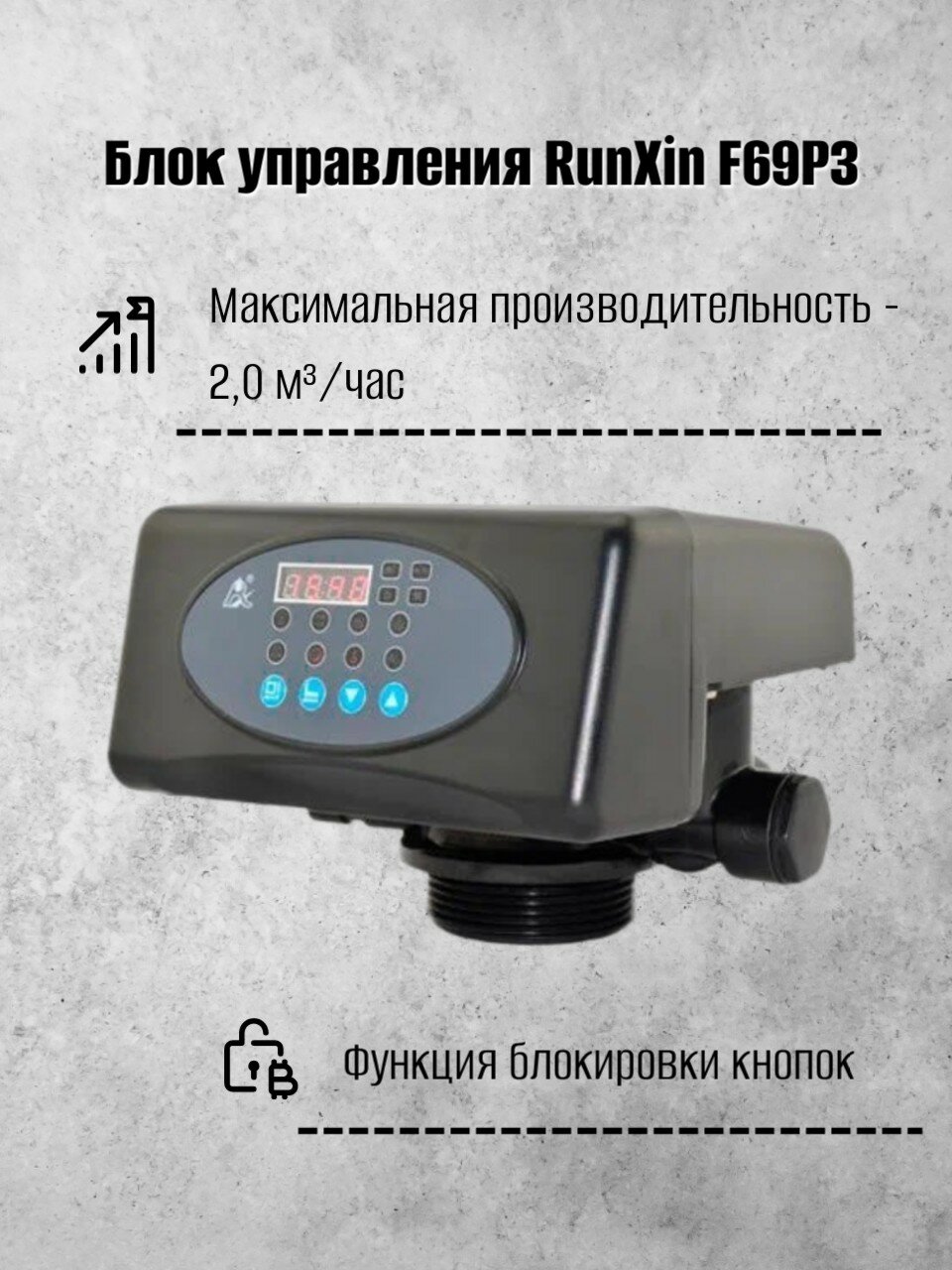 Автоматический клапан управления Runxin F69P3, для умягчения, производительность до 2м³/ч информация: