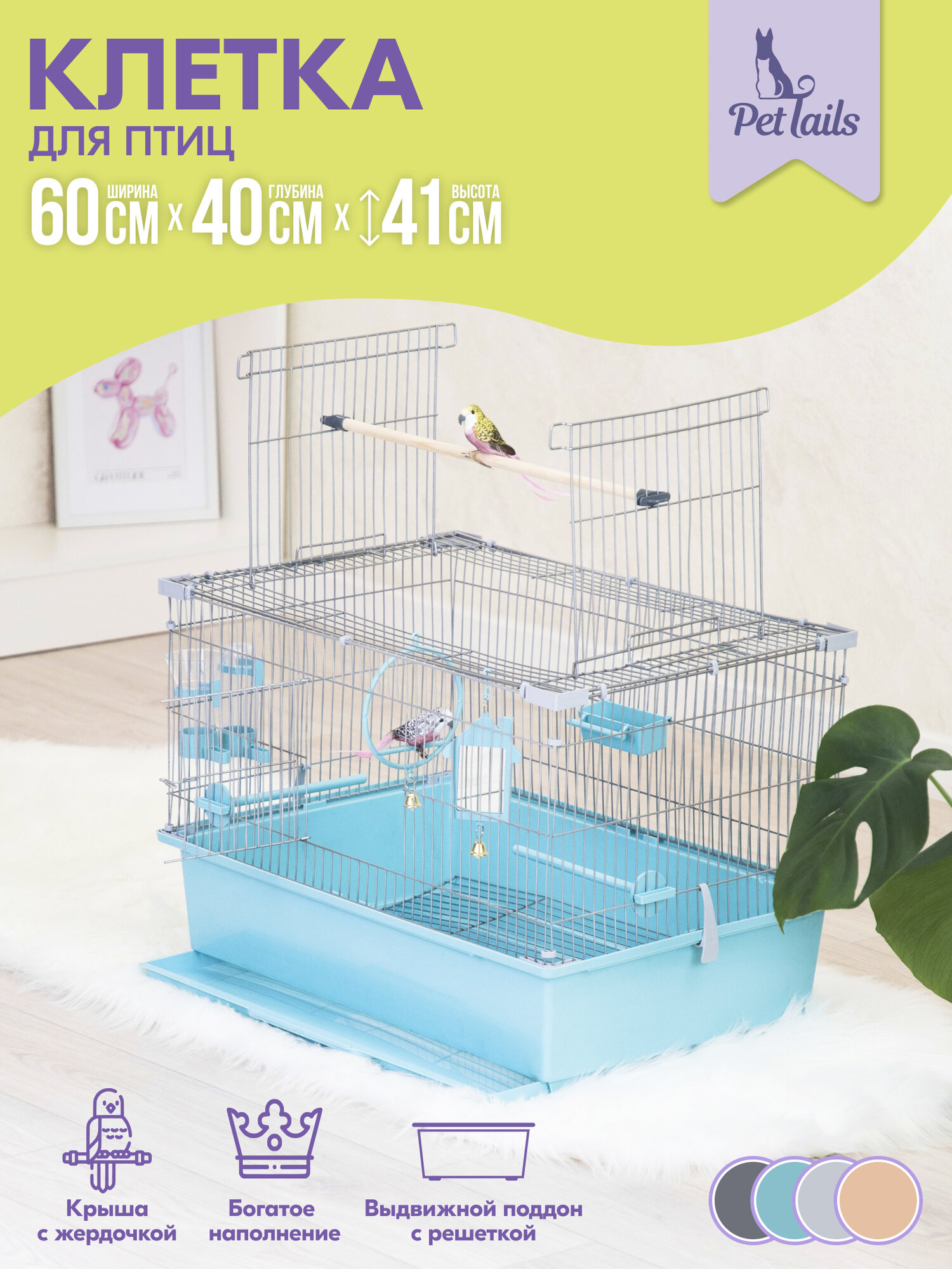 10 цен на Клетка ГОВОРУН-1 "PetTails" для птиц разборная 60 х 40 х h41, 1 этаж, бирюзовая