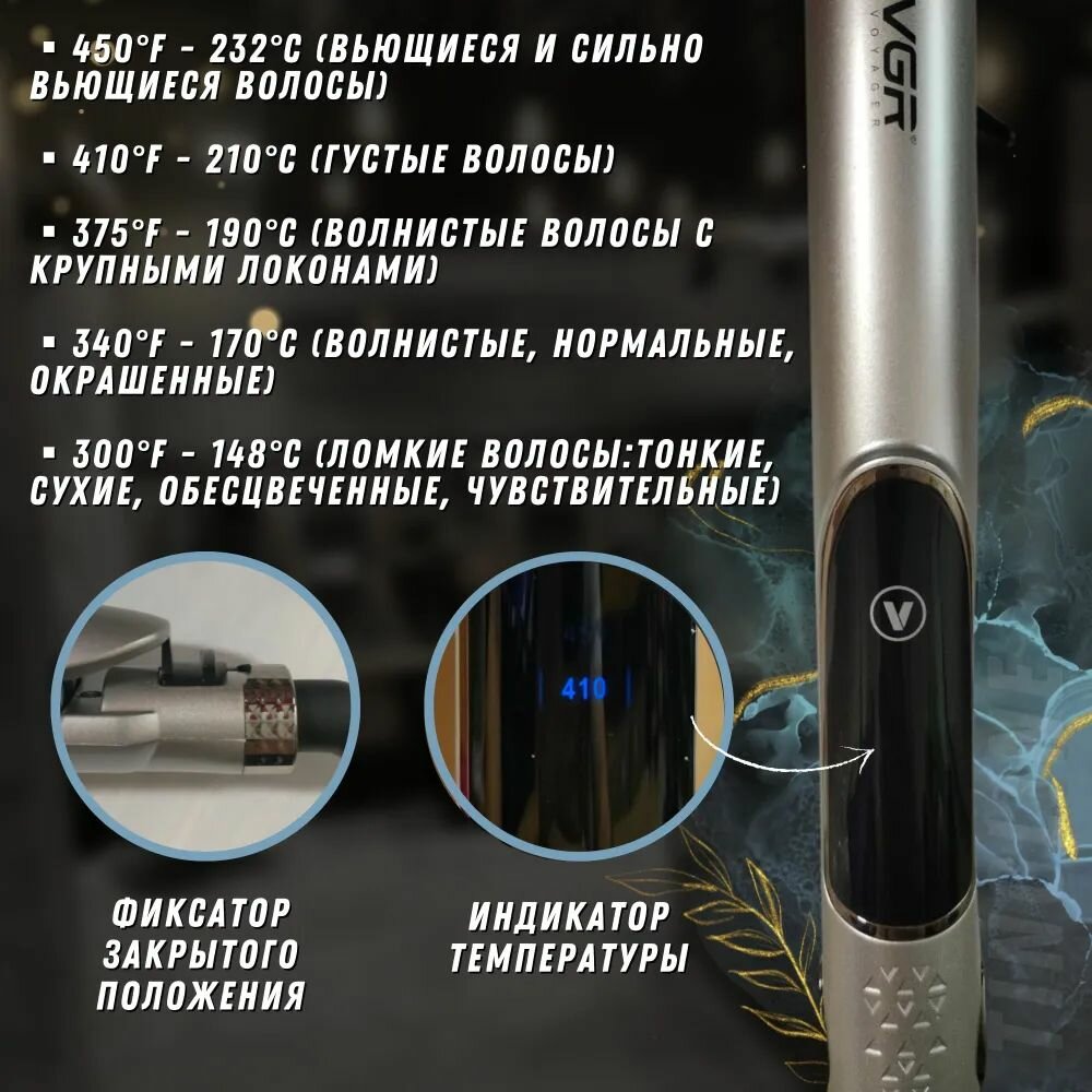 Электрощипцы - профессиональный утюжок-выпрямитель для укладки волос VGR V-520 / Щипцы для моделирования причёски
