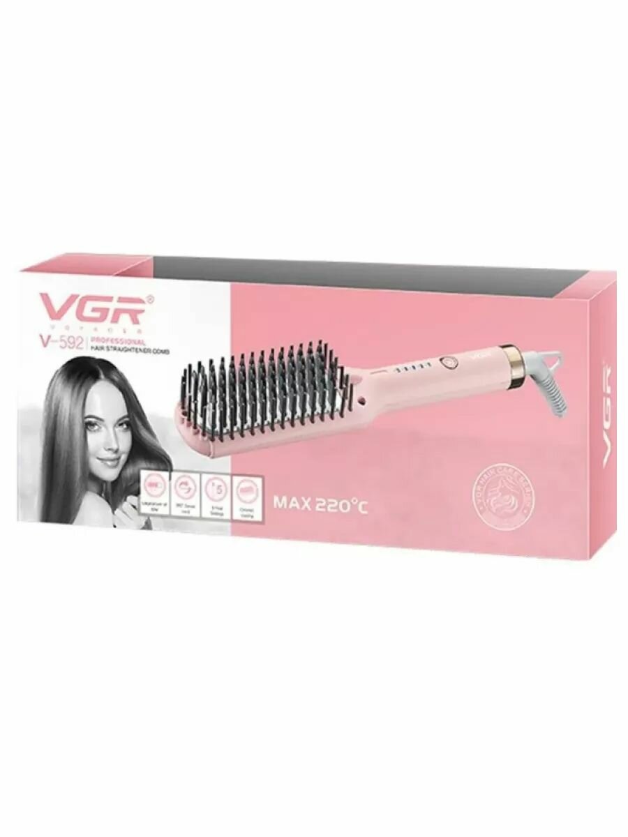 Расческа выпрямитель электрическая для волос V-592, розовая информация: