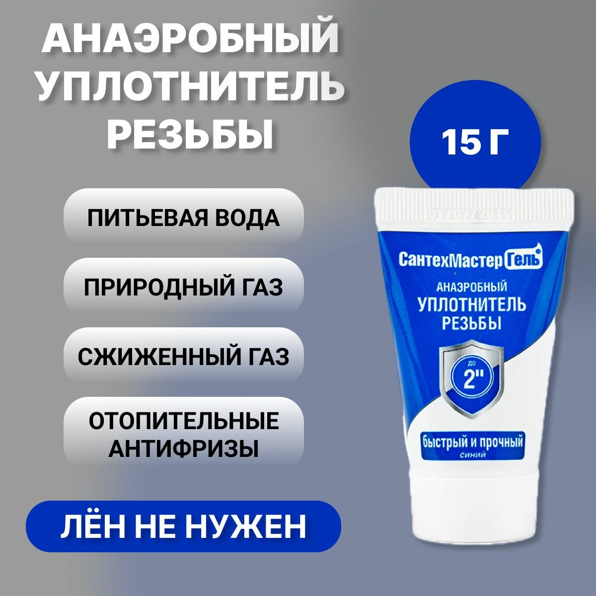 Герметик анаэробный, 15 гр Сантехмастер Гель, синий для воды, газа, топлива