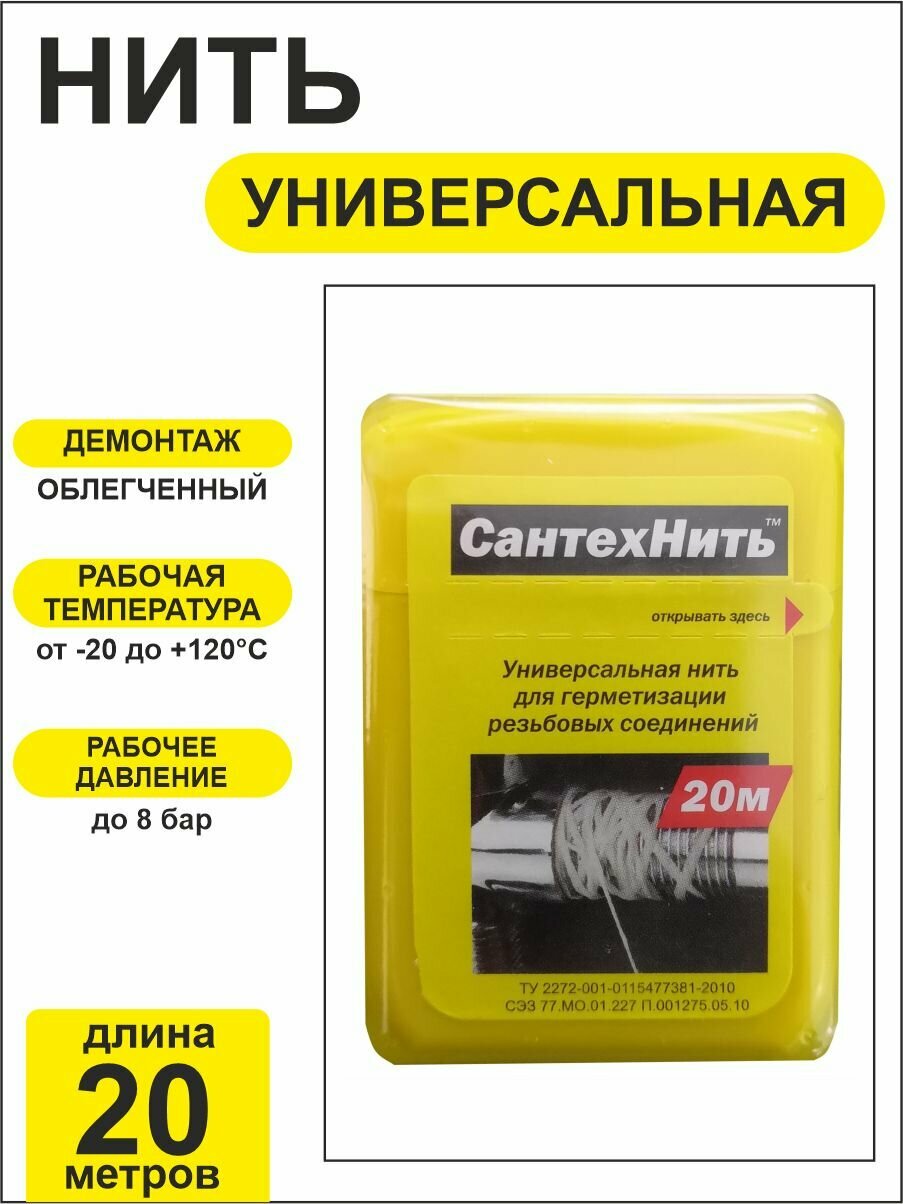 Нить сантехническая для резьбовых соединений СантехНить (20м) информация: