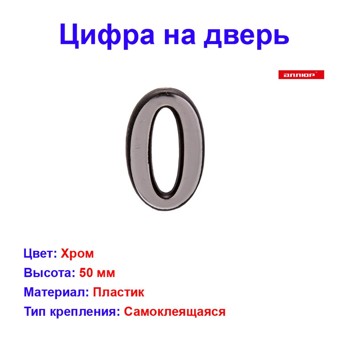 10 цен на Цифра 0 дверная Аллюр, самоклеящаяся, пластик, 30х50 мм, цвет хром