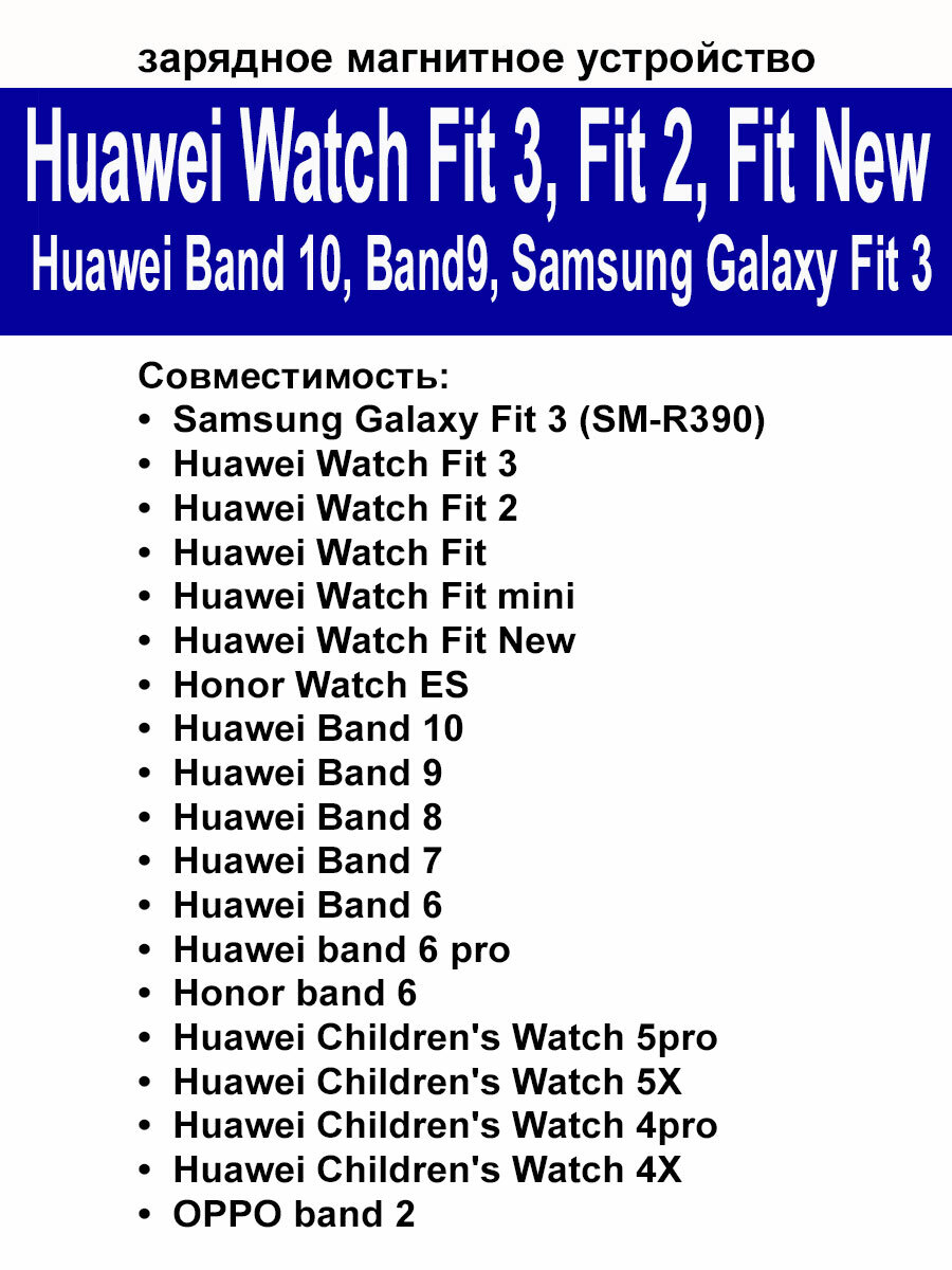 Зарядное магнитное устройство (usb-кабель) для Huawei Watch Fit 3/ Fit 2/ Fit 2 New/ Fit/ Samsung Fit 3 (SM-R390)/ Huawei Band 10, 9, 8, 7, 6, длина 1м, белый информация: