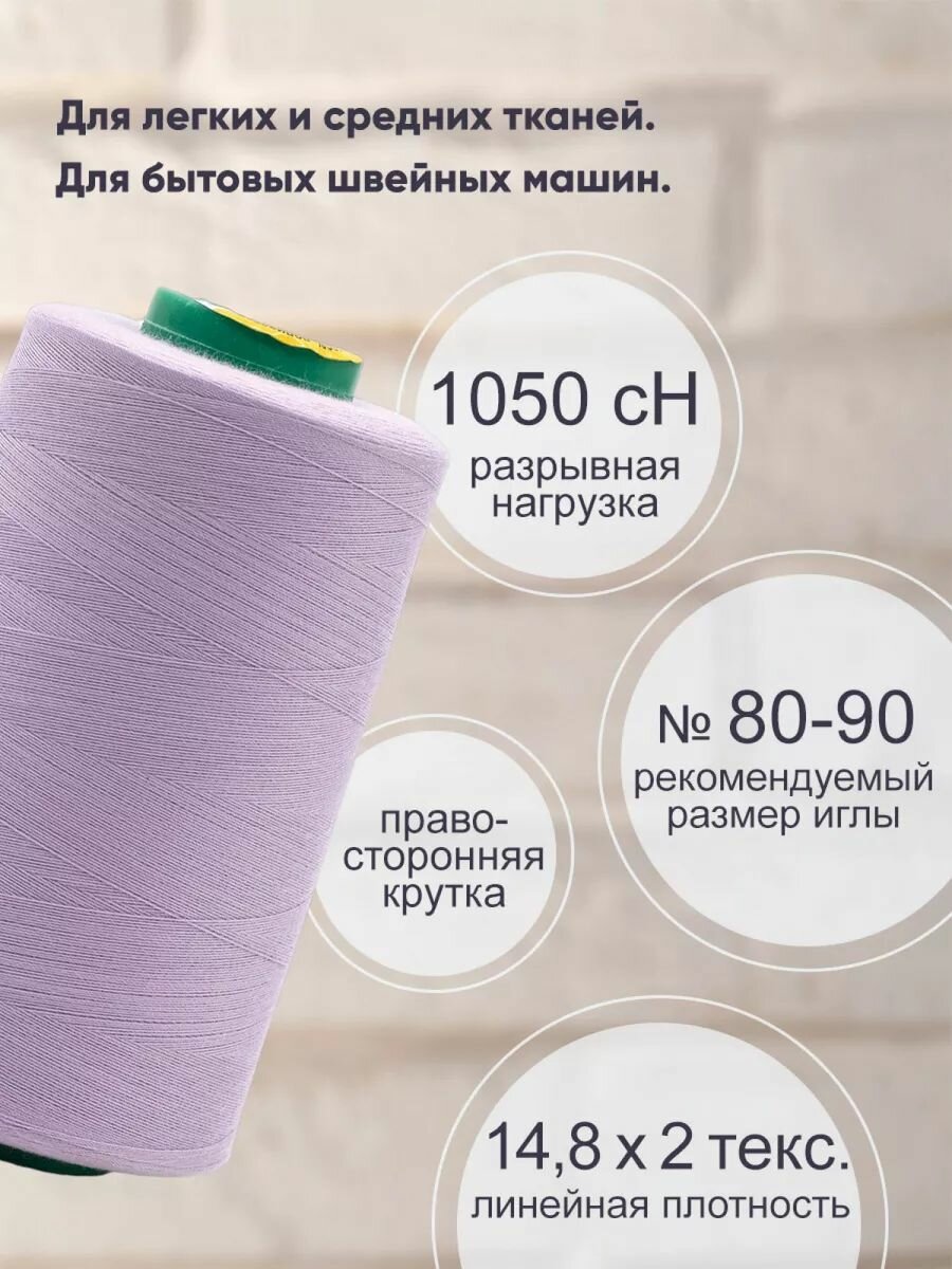 Отзывы на Нитки швейные универсальные 40/2, 5000 ярд, промышленные, Bestex (285 тёмный пастельно-сиреневый)