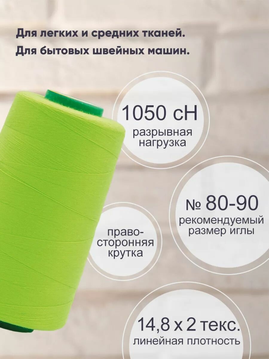 10 цен на Нитки швейные универсальные 40/2, 5000 ярд, промышленные, Bestex (304 лайм)