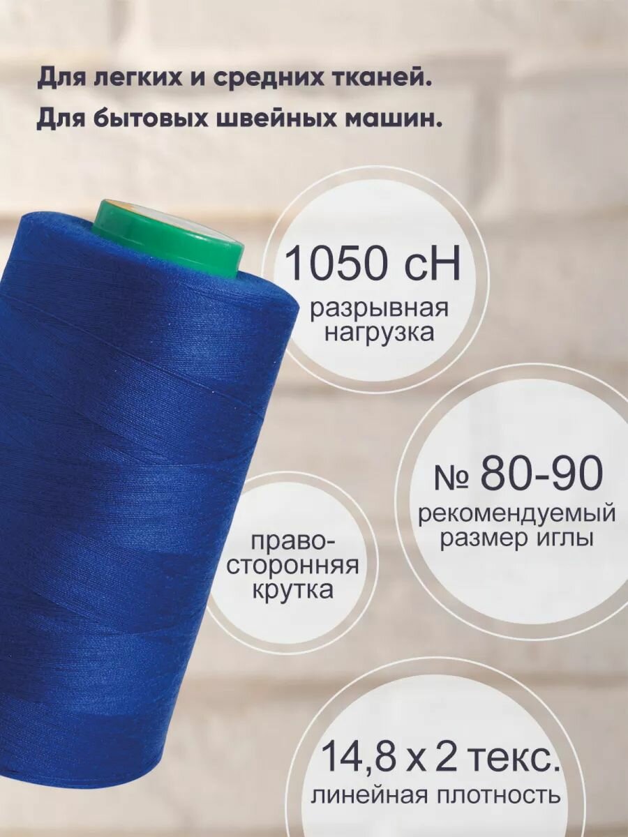 Отзывы на Нитки швейные универсальные 40/2, 5000 ярд, промышленные, Bestex (К221 синий)