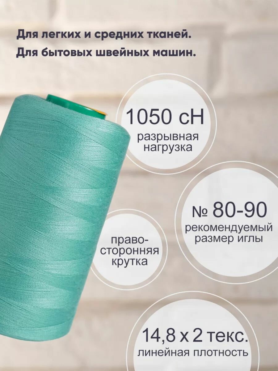 10 цен на Нитки швейные универсальные 40/2, 5000 ярд, промышленные, Bestex (360 тёмно-зеленый иней)