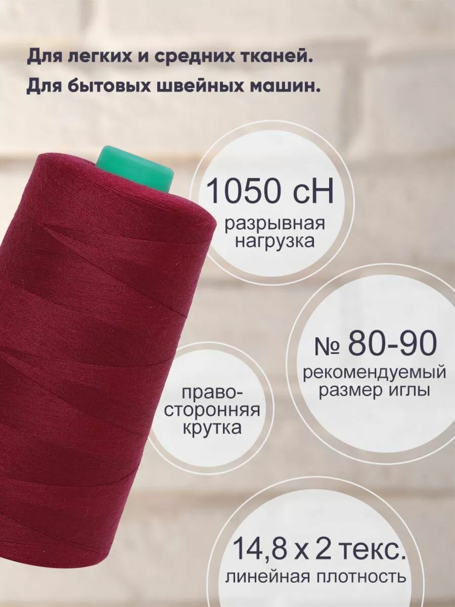 10 цен на Нитки швейные универсальные 40/2, 5000 ярд, промышленные, Bestex (247 тёмно-вишневый)