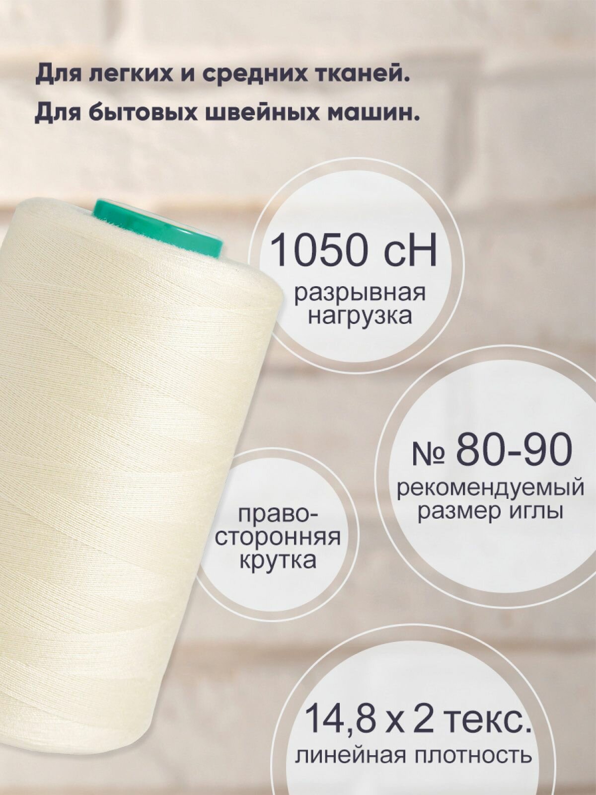 10 цен на Нитки швейные универсальные 40/2, 5000 ярд, промышленные, Bestex (152 бело-молочный)