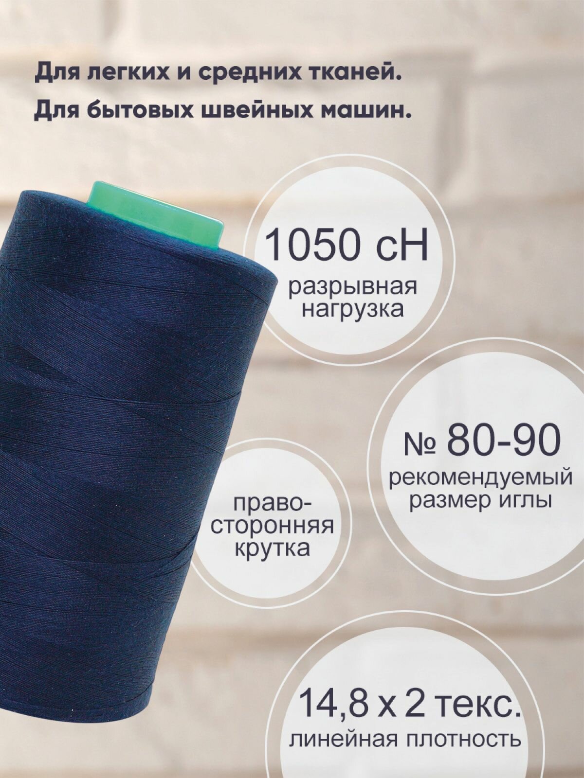 Нитки швейные универсальные 40/2, 5000 ярд, промышленные, Bestex (096 тёмно-синий) 290 ₽
