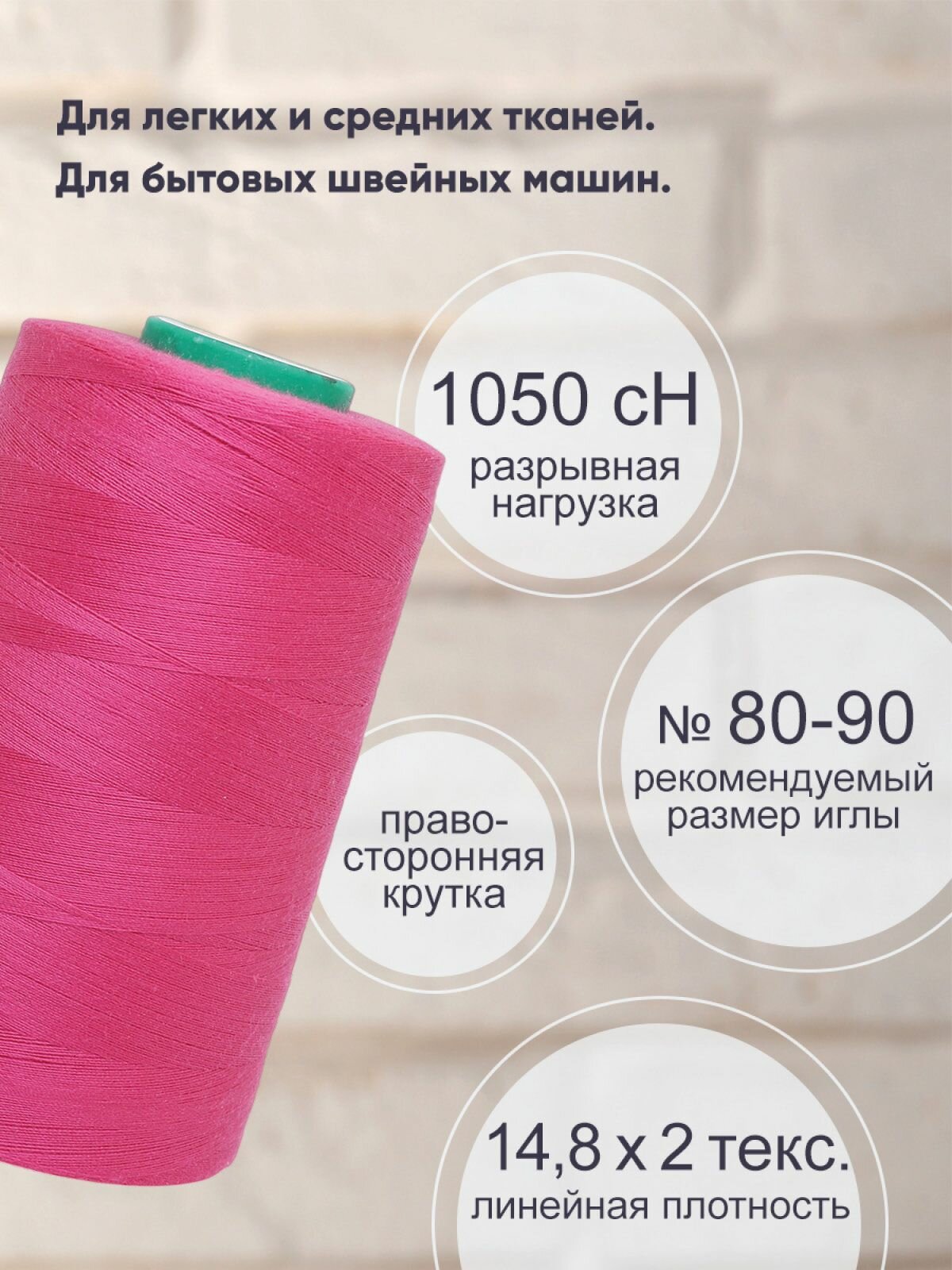 10 цен на Нитки швейные универсальные 40/2, 5000 ярд, промышленные, Bestex (295 яркая фуксия)