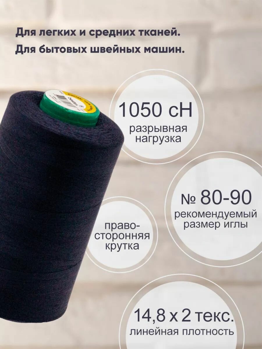 Нитки промышленные Bestex 40/2, универсальные, 5000 ярдов (275 тёмный индиго)
