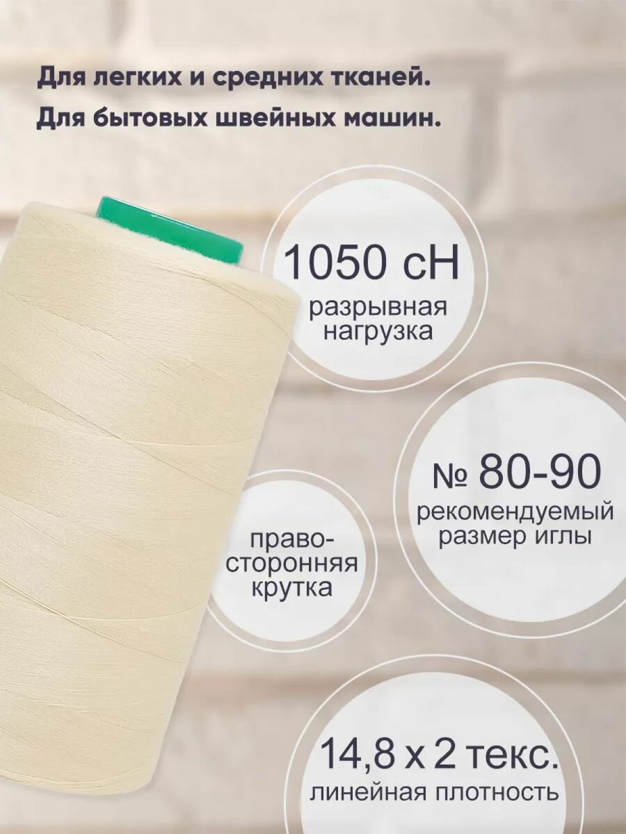 10 цен на Нитки швейные универсальные 40/2, 5000 ярд, промышленные, Bestex (155 молочный)