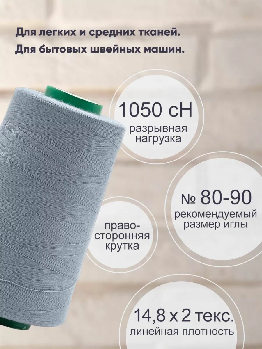 Нитки швейные универсальные 40/2, 5000 ярд, промышленные, Bestex (308 серо-голубой) 290 ₽