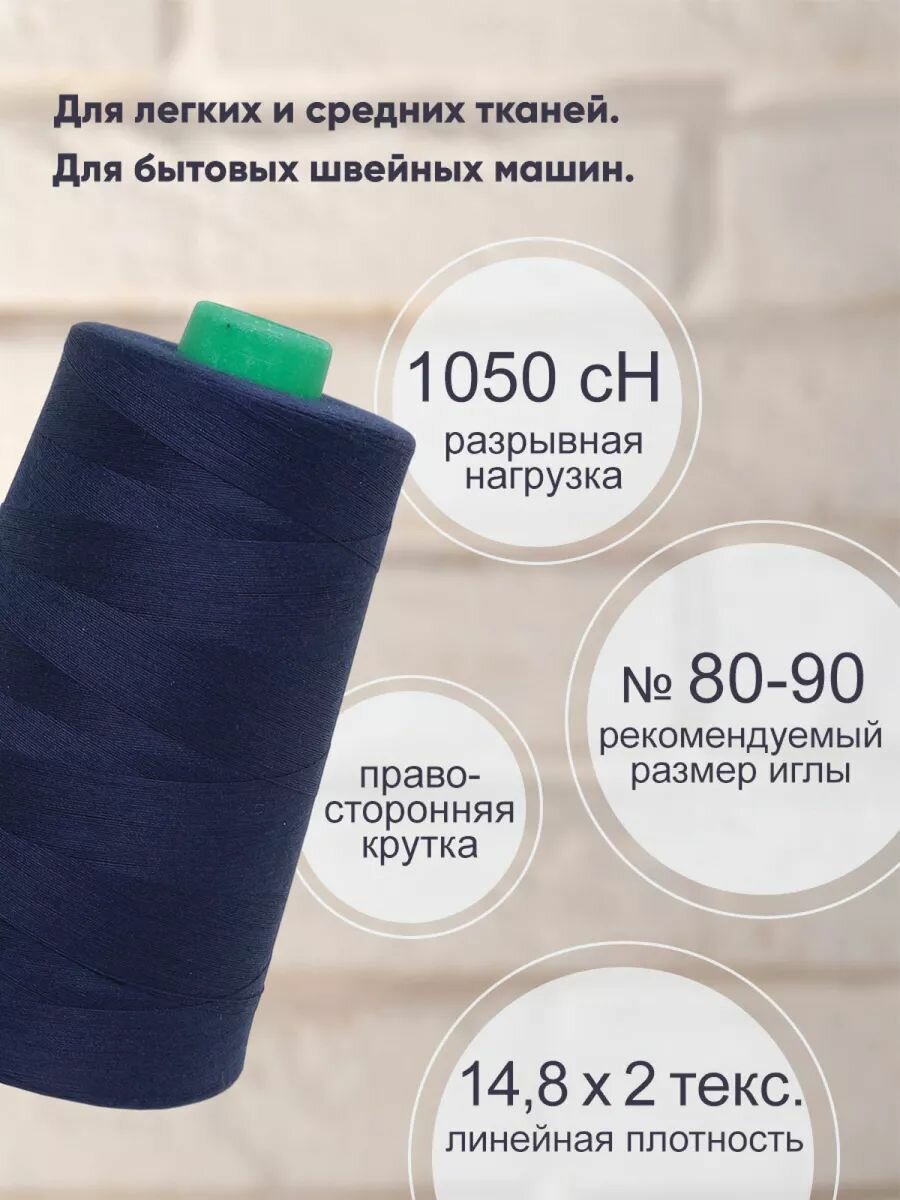 Отзывы на Нитки швейные универсальные 40/2, 5000 ярд, промышленные, Bestex (096 тёмно-синий)